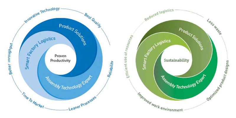 We help our customers exploit potentials. Avoiding future costs and optimizing individual products begins in the design phase and continues through the structuring of supply chains and on to the production processes. Time and time again, we find that this approach enables our customers to measurably increase their productivity. That is why we talk about “Proven Productivity”. This approach also helps reduce the environmental impact, because streamlining means using materials, energy, and production capacities carefully and in a targeted manner. Experience shows that the efficient use of resources, optimized product designs, and simplified logistics processes lead to less waste and lower emissions.