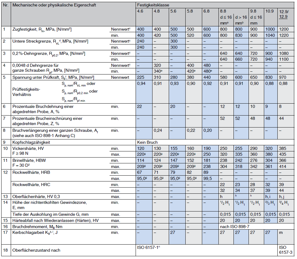 nach ISO 898, Teil 1