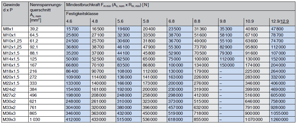 Mindestbruchkräfte – Metrisches ISO-Regelgewinde