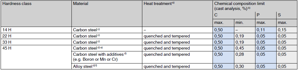 c) Free-cutting steel may be used, with maximum lead content 0,35 %, maximum phosphorus content 0,11 % and maximum sulfur content 0,34 %.