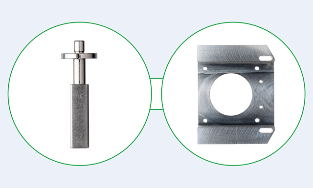 Two of the many parts that Bossard procures for its client. To the left, the initial bolt. To the right, the part that secures the position of the motor on the analysis module. Due to high temperatures in the analysis module, these parts are made of high-precision steel.