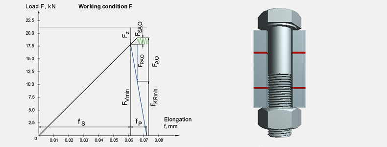 What you get from the calculation according the VDI 2230 guideline are securely calculated joints and the certainty that the defined fastener will withstand the load for the specified lifetime under the tested conditions. This includes the verification of the load capacity of the screw connection.