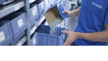 Bossards Smart Factory Logistics är en revolutionerande lösning för hantering av fästelement och C-artiklar. Våra system kontrollerar ständigt lagernivån och beställer automatiskt produkterna du behöver. Du kan följa allting via vår användarvänliga plattform som möjliggör ytterligare effektivitet i produktionen. Tack vare systemet kan du fokusera på din kärnkompetens medan hanteringen av dina C-artiklar blir mer felfri och transparent.