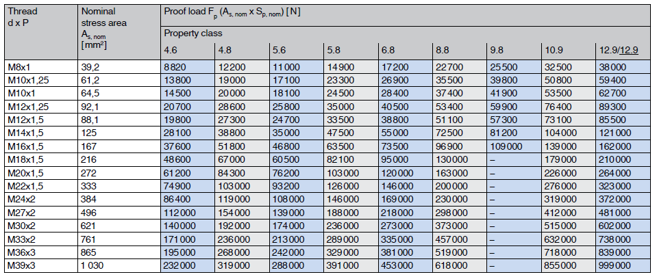 4) Value for stress under proof load Sp, nom and their relation to stress at non-proportional elongation see mechanical and physical properties of screws, No. 5 in table.